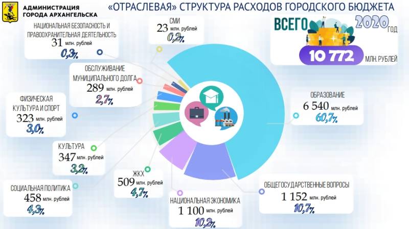 Если говорить о распределении этих средств в 2020 году по отраслям, то наибольшая часть бюджетных денег будет направлена на образование – 6,5 миллиардов рублей или 60%.