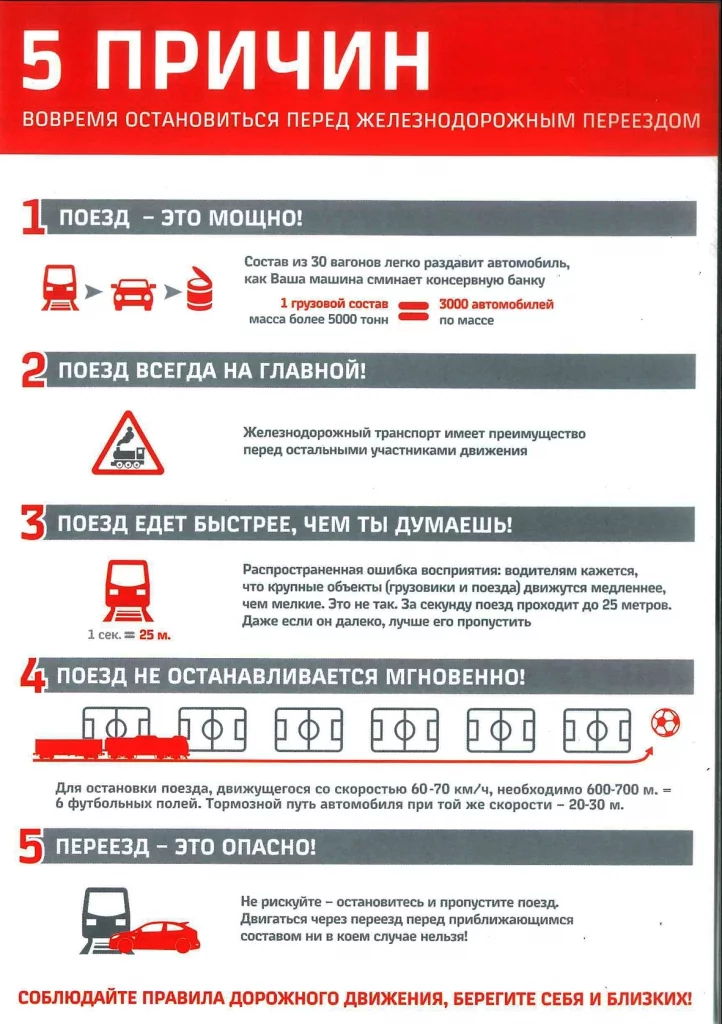 Пять причин вовремя остановиться перед желенодорожным переездом.