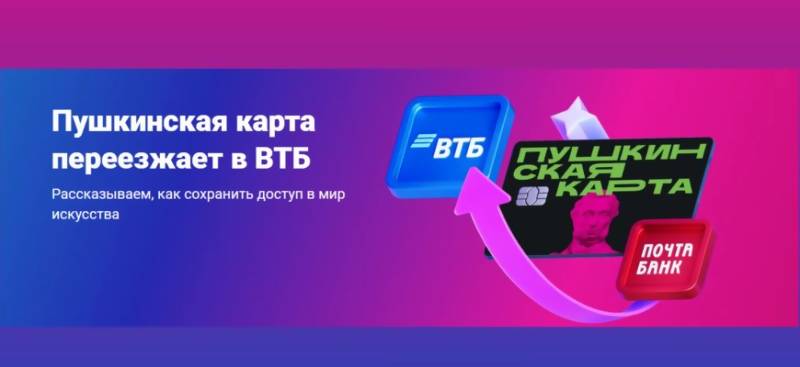 В связи с изменением с 1 января 2026 года банка-оператора программы "Пушкинская карта" информируем о следующем. Оператором программы социальной поддержки молодежи в возрасте от 14 до 22 лет для повышения доступности организаций культуры "Пушкинская карта" определен Банк ВТБ (ПАО) в связи с прекращением деятельности АО "Почта Банк" в результате реорганизации. . . .