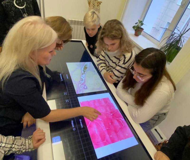 - В ходе мастер-класса школьники учатся работать с современным оборудованием, на практике осваивают различные биологические методики, изучая ткани растений и животных, в том числе: мозжечок животных, потовые железы, волосы, эпителий и другие образцы, - рассказывает заместитель директора МБОУ СШ № 33 Наталья Сергеевна Поспелова.