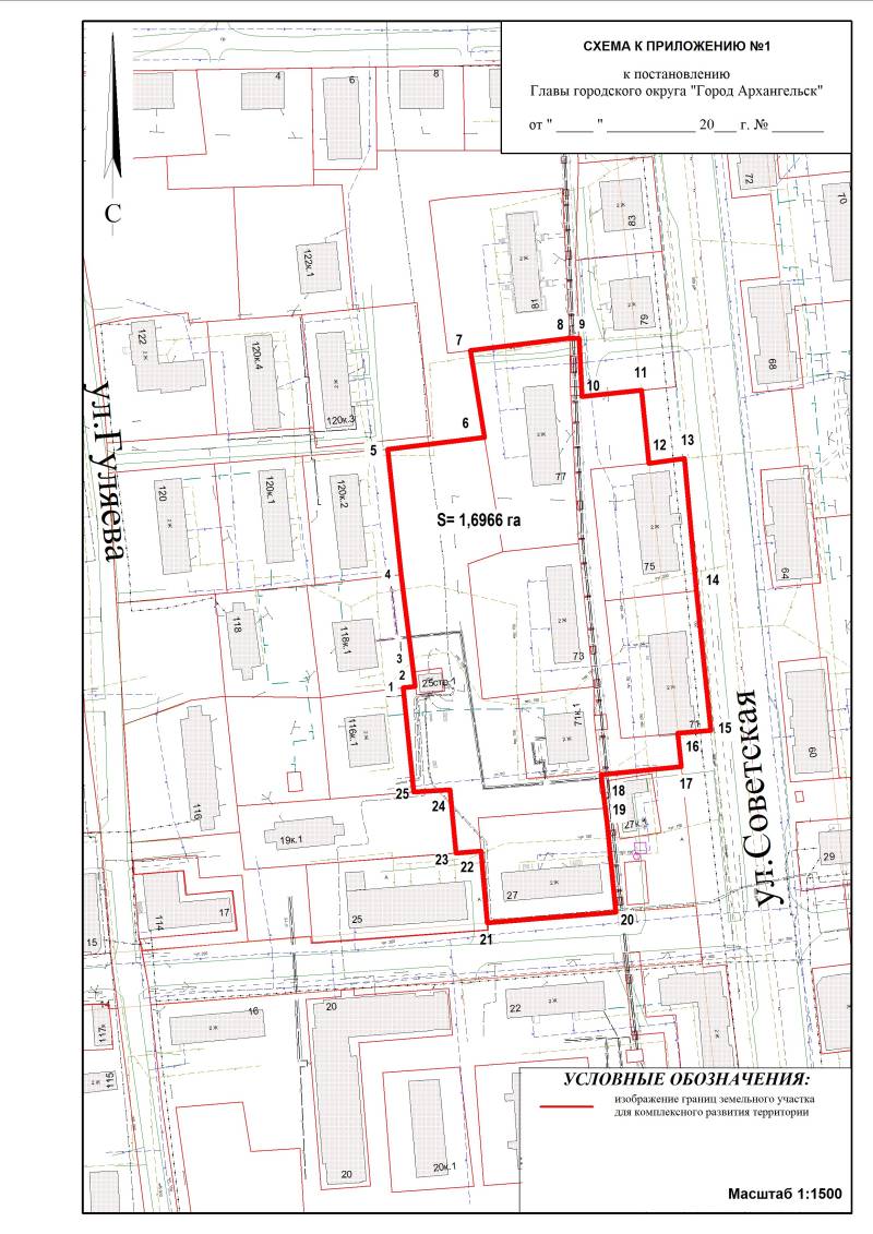 Проект постановления Главы городского округа "Город Архангельск" "О принятии решения о комплексном развитии территории жилой застройки городского округа "Город Архангельск" в границах части элемента планировочной структуры: просп. Никольский, ул. Советская, ул. Кедрова площадью 1,6966 га, подлежащей комплексному развитию"