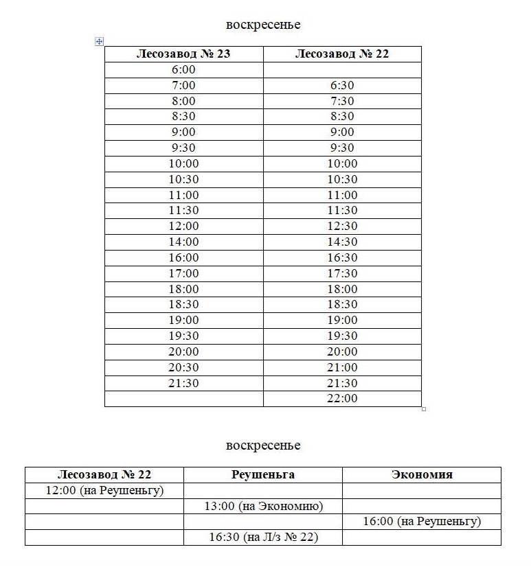 Обращаем внимание, что меняется и расписание на Реушеньгу в воскресенье.