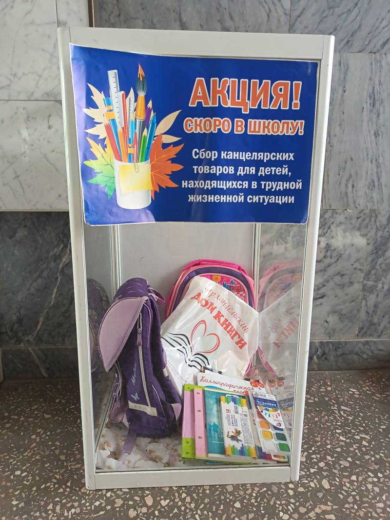 С 2005 года в преддверии Дня знаний в городе Архангельске проходит акция "Скоро в школу". Она направлена на оказание помощи семьям, оказавшимся в трудной жизненной ситуации, в подготовке первоклассников к школе, обеспечению их школьными принадлежностями. С 1 августа в здании городской Администрации вновь установлен специальный куб для сбора школьных принадлежностей. . . .