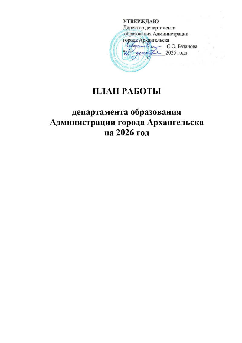 ПЛАН РАБОТЫ департамента образования Администрации города Архангельска на 2026 год