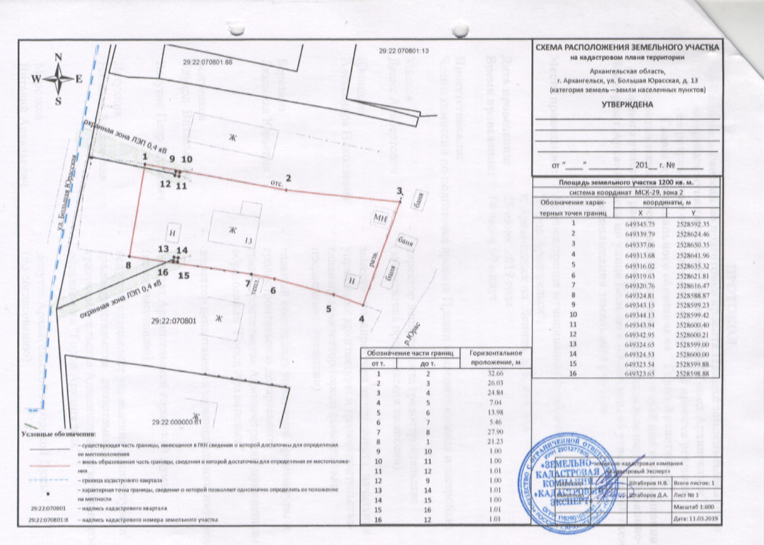 2.     Отказать в утверждении схемы расположения земельного участка в кадастровом квартале 29:22:070801 площадью 1200 кв.м, расположенного в территориальном округе Варавино-Фактория г.Архангельска по улице Большая Юрасская, 13, в границах территориальной зоны сельскохозяйственного использования СХ-1 согласно Правилам землепользования и застройки муниципального образования "Город Архангельск" (категория земель – земли населенных пунктов) для размещения индивидуального жилого дома (для индивидуального жилищного строительства).
