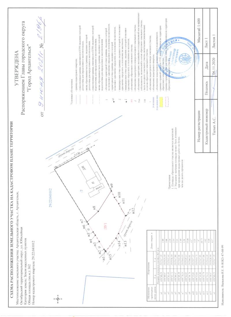 Распоряжение от 9 июня 2021 г. № 2196р "О предоставлении разрешения на условно разрешенный вид использования земельного участка, расположенного в Октябрьском территориальном округе г. Архангельска по улице Юбилейной, об утверждении схемы расположения земельного участка"