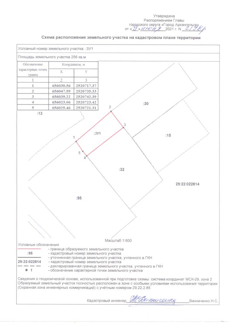 2. Утвердить прилагаемую схему расположения земельного участка  площадью 256 кв. м в кадастровом квартале 29:22:022814, расположенного в  Соломбальском территориальном округе г.Архангельска по улице Депутатской, в границах территориальной зоны застройки индивидуальными жилыми домами Ж1  согласно Правилам землепользования и застройки городского округа "Город Архангельск" (категория земель – земли населенных пунктов) с видом разрешенного использования "ведение огородничества: размещение хозяйственных построек, не являющихся объектами недвижимости, предназначенных для хранения инвентаря и урожая сельскохозяйственных культур".
