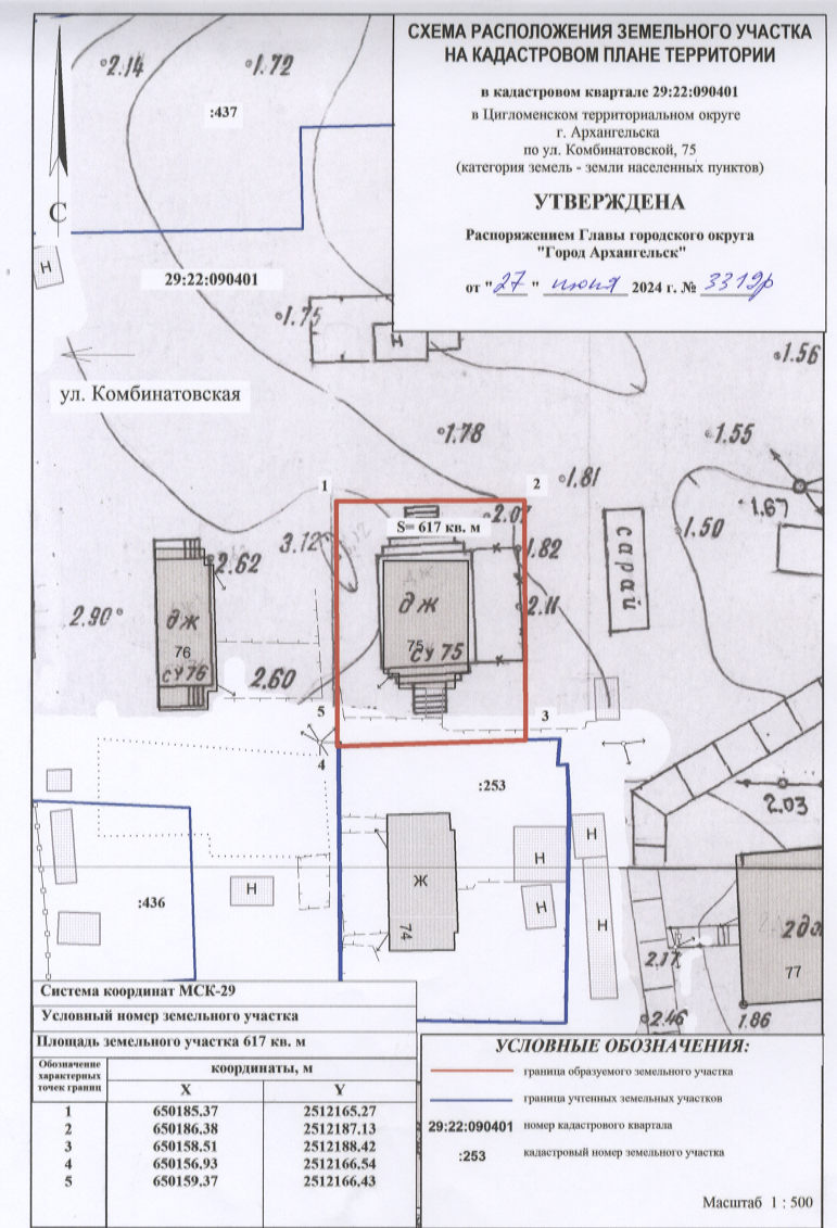земельного участка площадью 617 кв. м в кадастровом квартале 29:22:090401, расположенного в Цигломенском территориальном округе г. Архангельска по улице Комбинатовской, 75;