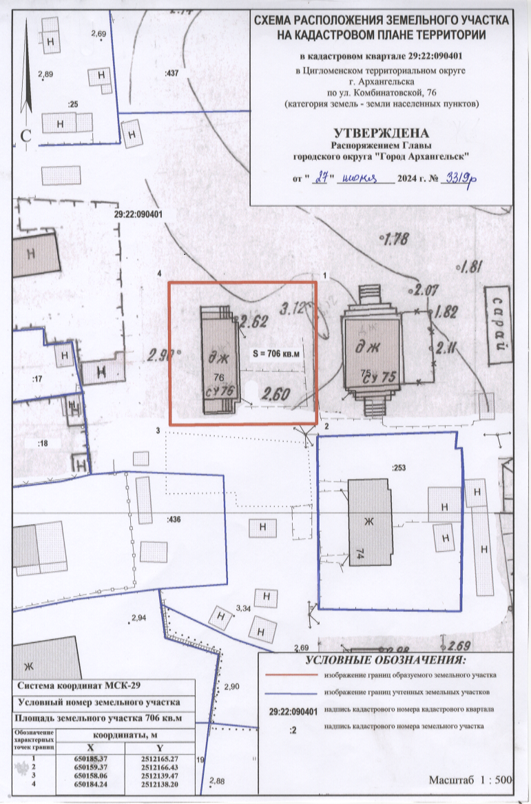 земельного участка площадью 706 кв. м в кадастровом квартале 29:22:090401, расположенного в Цигломенском территориальном округе г. Архангельска по улице Комбинатовской, 76, в границах зоны застройки индивидуальными жилыми домами Ж1 согласно Правилам землепользования и застройки городского округа "Город Архангельск" (категория земель – земли населенных пунктов);
