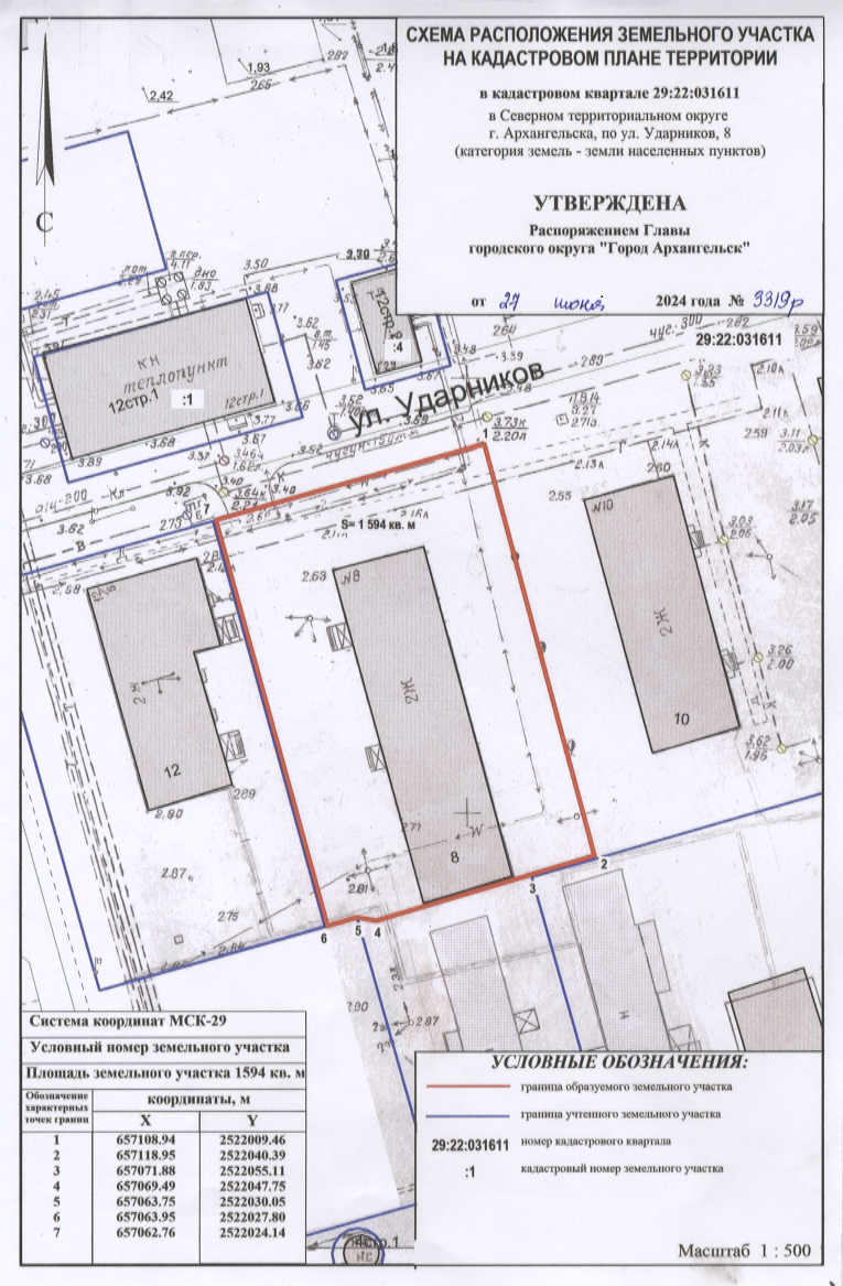 земельного участка площадью 1 594 кв. м в кадастровом квартале 29:22:031611, расположенного в северном территориальном округе г. Архангельска