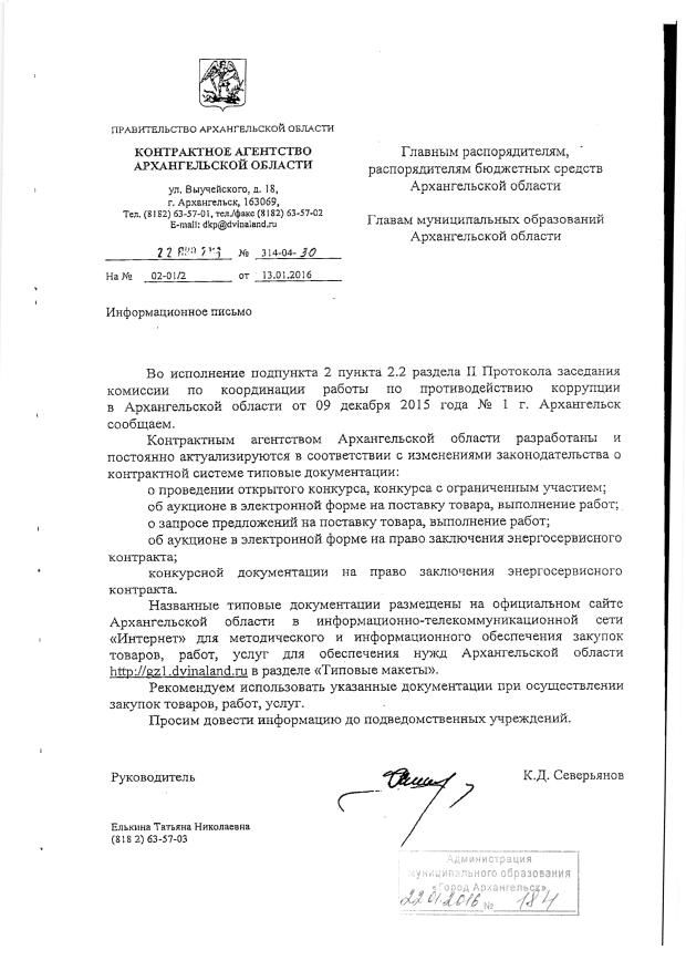 63. Методические рекомендации контрактного агентства Архангельской области по вопросам подготовки, заключения, исполнения и расторжения контрактов на осуществление закупок товаров, работ, услуг для обеспечения государственных и муниципальных нужд