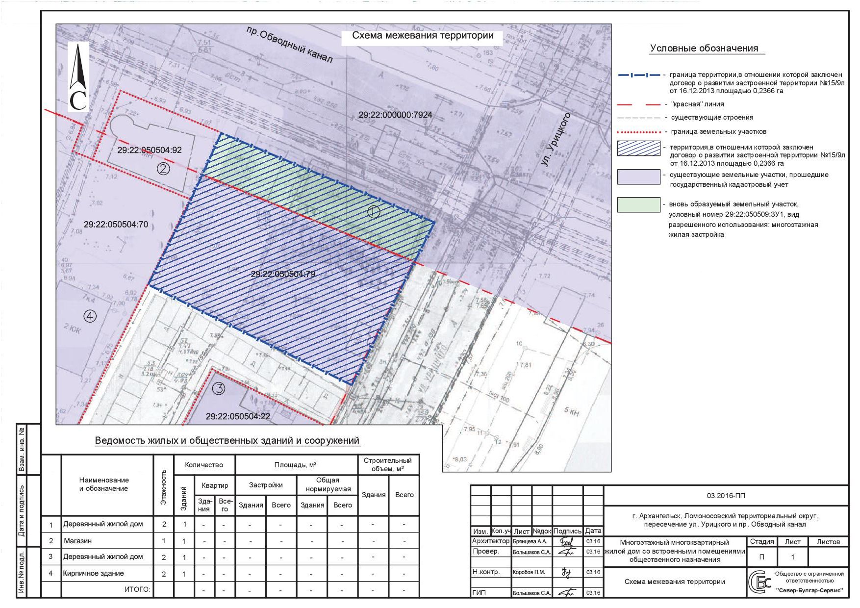 Проект планировки и проект межевания застроенной территории в границах ул. Урицкого и пр. Обводный канал в Ломоносовском территориальном округе г.Архангельска