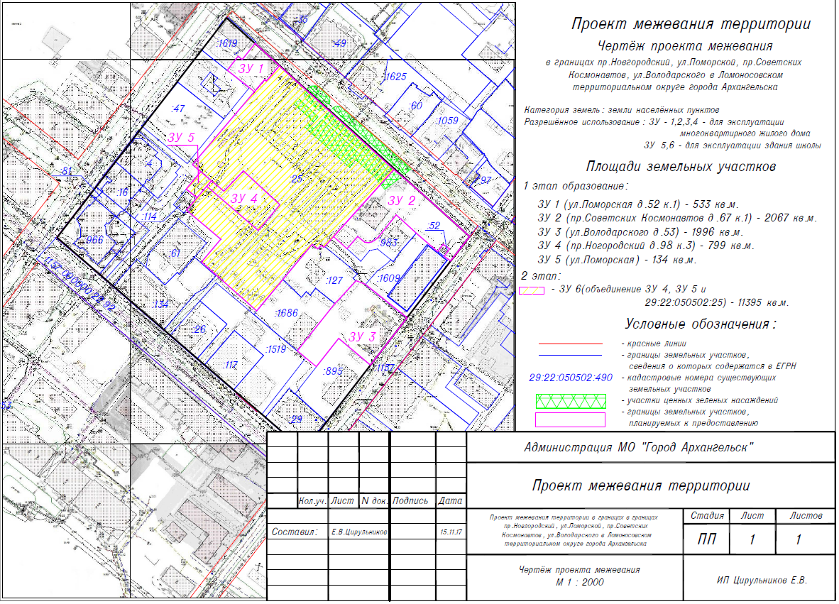 2. Адрес месторасположения земельного участка: г. Архангельск, ул. Володарского, д. 53. Границы земельного участка 29:22:050502:ЗУ3 определены проектом межевания территории муниципального образования "Город Архангельск" в границах пр.Новгородского, ул.Поморской, пр. Советских космонавтов и ул.Володарского, утвержденным распоряжением Главы муниципального образования "Город Архангельск" от 07.02.2018 № 449р: