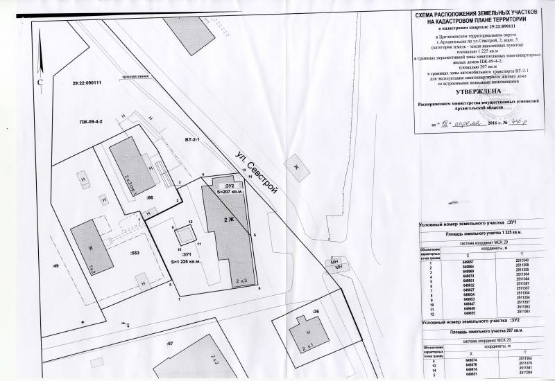 2. Адрес месторасположения земельного участка: г. Архангельск, ул. Севстрой, д. 2, корп. 3. Данный земельный участок расположен в кадастровом квартале 29:22:090111. Утвержденная схема расположения земельного участка: