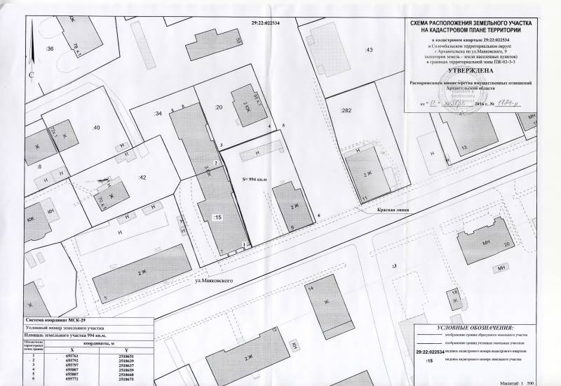 2. Адрес месторасположения земельного участка: г. Архангельск, ул. Маяковского, д. 9. Данный земельный участок расположен в кадастровом квартале 29:22:022534. Утвержденная схема расположения земельного участка: