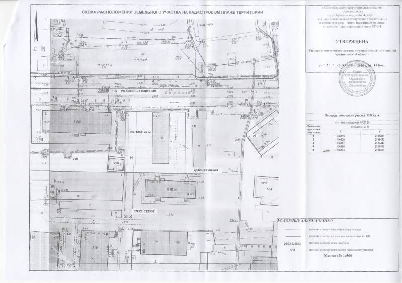 2. Адрес месторасположения земельного участка: г. Архангельск, ул. Красных партизан, д. 4, корп. 1. Данный земельный участок расположен в кадастровом квартале 29:22:022532. Утвержденная схема расположения земельного участка: