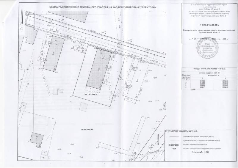 2. Адрес месторасположения земельного участка: г. Архангельск, ул. Победы, д. 15, корп. 2. Данный земельный участок расположен в кадастровом квартале 29:22:012006. Утвержденная схема расположения земельного участка: