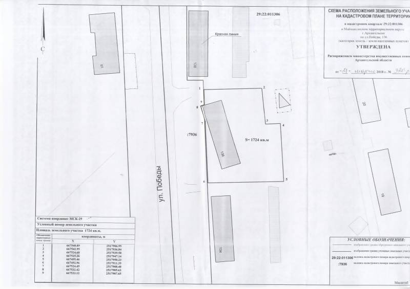 2. Адрес месторасположения земельного участка: г. Архангельск, ул. Победы, д. 136. Данный земельный участок расположен в кадастровом квартале 29:22:011306. Утвержденная схема расположения земельного участка: