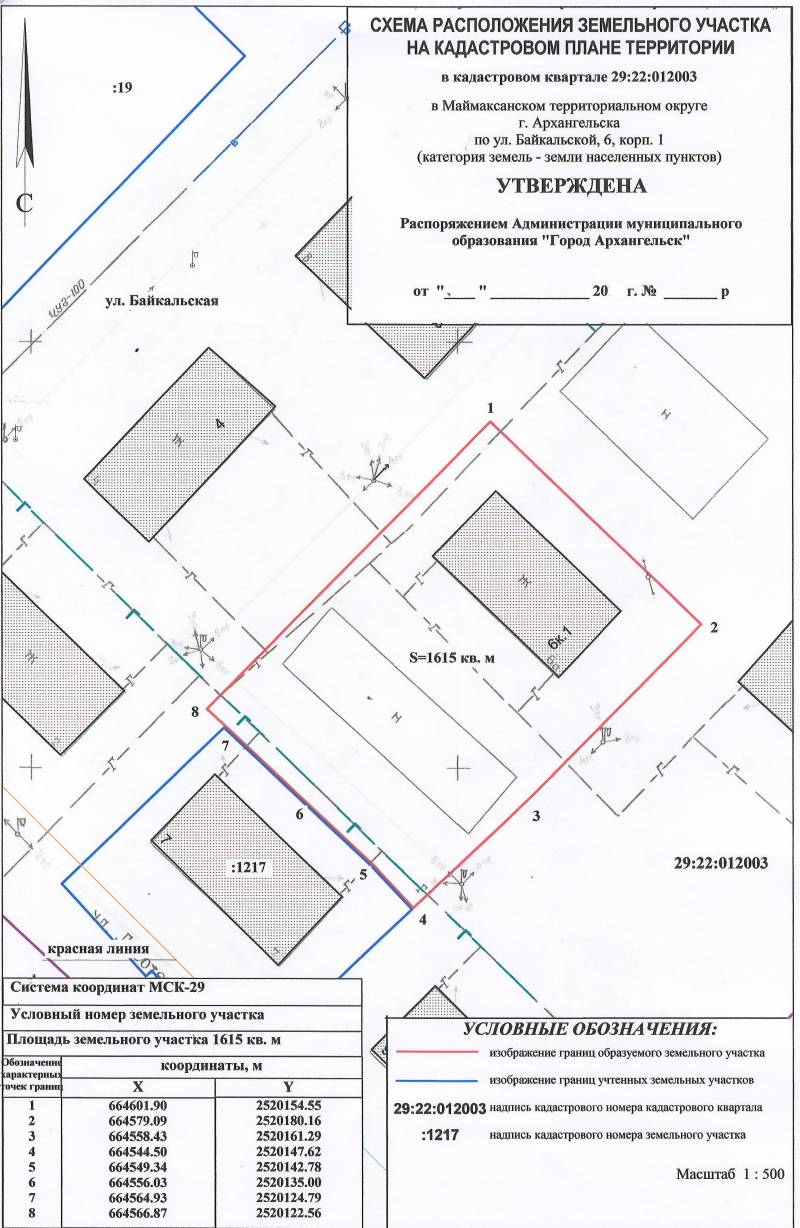 корп. 1. Данный земельный участок расположен в кадастровом квартале 29:22:012003. Планируемая к утверждению схема расположения земельного участка:
