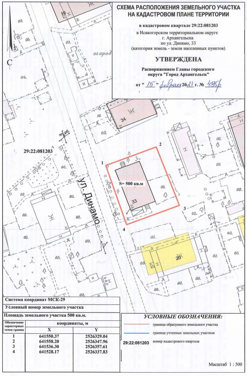 д. 33. Данный земельный участок расположен в кадастровом квартале 29:22:081203. Утвержденная схема расположения земельного участка: