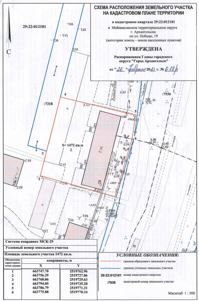 д. 19. Данный земельный участок расположен в кадастровом квартале 29:22:012101. Утвержденная схема расположения земельного участка: