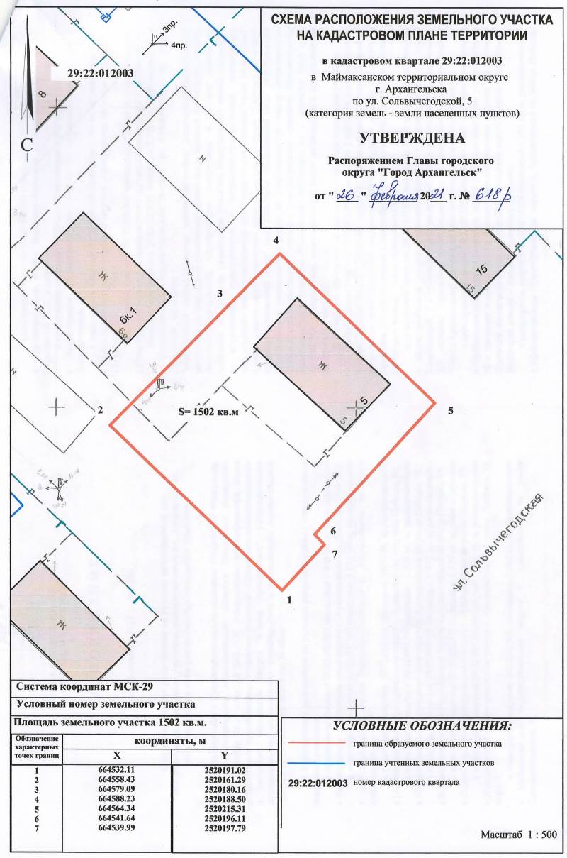 д. 5. Данный земельный участок расположен в кадастровом квартале 29:22:012003. Утвержденная схема расположения земельного участка: