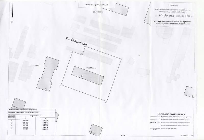 2. Адрес месторасположения земельного участка: г. Архангельск, ул. Островная, д. 8. Данный земельный участок расположен в кадастровом квартале 29:22:012512. Утвержденная схема расположения земельного участка: