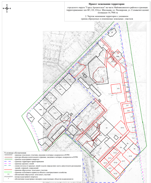 2. Адрес месторасположения земельного участка: г. Архангельск, ул. Пионерская, д. 155. Границы земельного участка 29:22:012003:ЗУ10 определены проектом межевания территории городского округа "Город Архангельск" на часть Маймаксанского района в границах территориальных зон Ж3, О2, О1 (ул. Школьная, ул. Пионерская, ул. Сольвычегодская) площадью 16,7968 га, утвержденным постановлением Главы городского округа "Город Архангельск" от 08.02.2024 № 169: