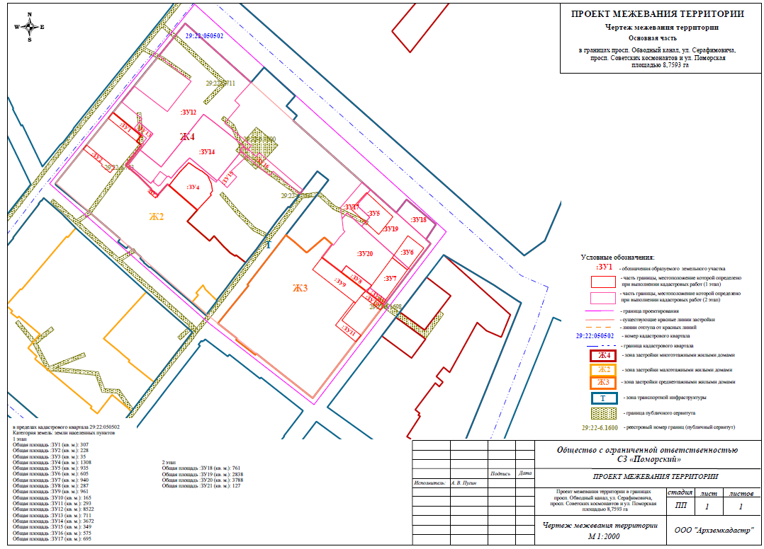 2. Адрес месторасположения земельного участка: г. Архангельск, ул. Серафимовича, д. 71. Границы земельного участка 29:22:050502:ЗУ7 определены проектом межевания территории муниципального образования "Город Архангельск" в границах просп. Обводный канал, ул. Серафимовича, просп. Советских космонавтов и ул. Поморской площадью 8,7593 га, утвержденным распоряжением Главы городского округа "Город Архангельск" от 25.12.2023 № 7349р: