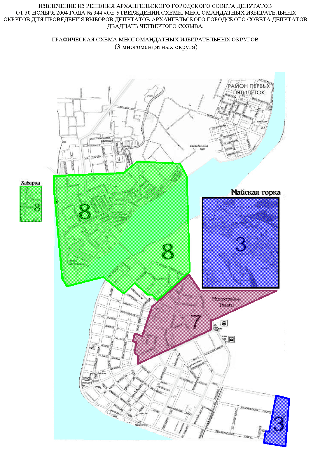 Извлечение из решения Архангельского городского Совета депутатов от 30 ноября 2004 года № 344 "Об утверждении схемы многомандатных избирательных округов для проведения выборов депутатов Архангельского городского Совета депутатов двадцать четвертого созыва"