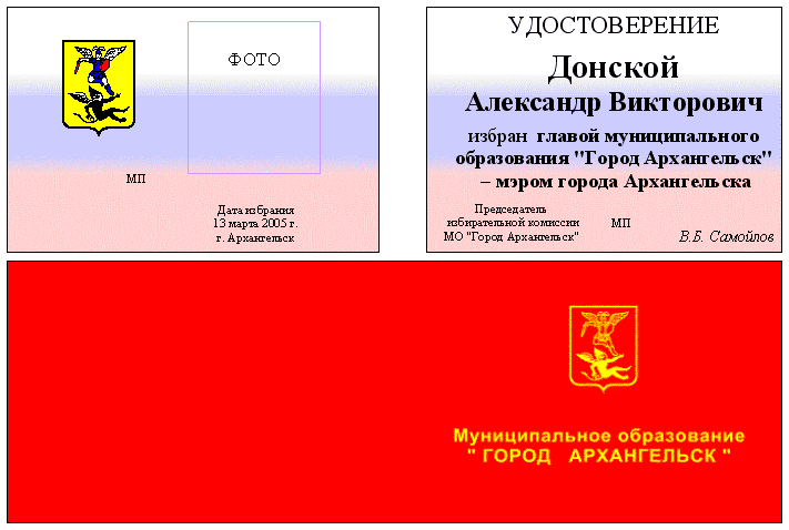 Образец удостоверения об избрании главы муниципального образования "Город Архангельск"