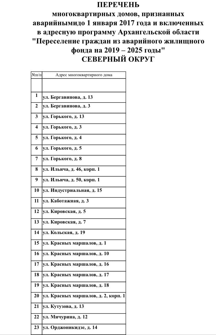 - Однако, Администрация столкнулась с неожиданной проблемой – не могут связаться с некоторыми собственниками. Нередки ситуации, когда фактически люди не проживают по месту регистрации, переехали в другой город или регион, сменили номер телефона. Однако за ними сохраняется право на получение жилья либо денежного возмещения. Посмотрите, пожалуйста, список. Может быть вы, ваши родные или друзья являются нанимателями/собственниками жилья в данных домах Северного территориального округа. Если вы нашли свой дом в указанном перечне, сообщите об этом в администрацию Архангельска, - призвал депутат Иван Воронцов.