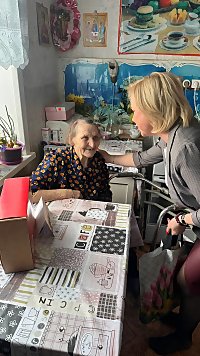 Так, депутат Кристина Саблина в теплой атмосфере поздравила ветерана военного времени, узницу Мякишеву Екатерину Ивановну, 1927 года рождения.