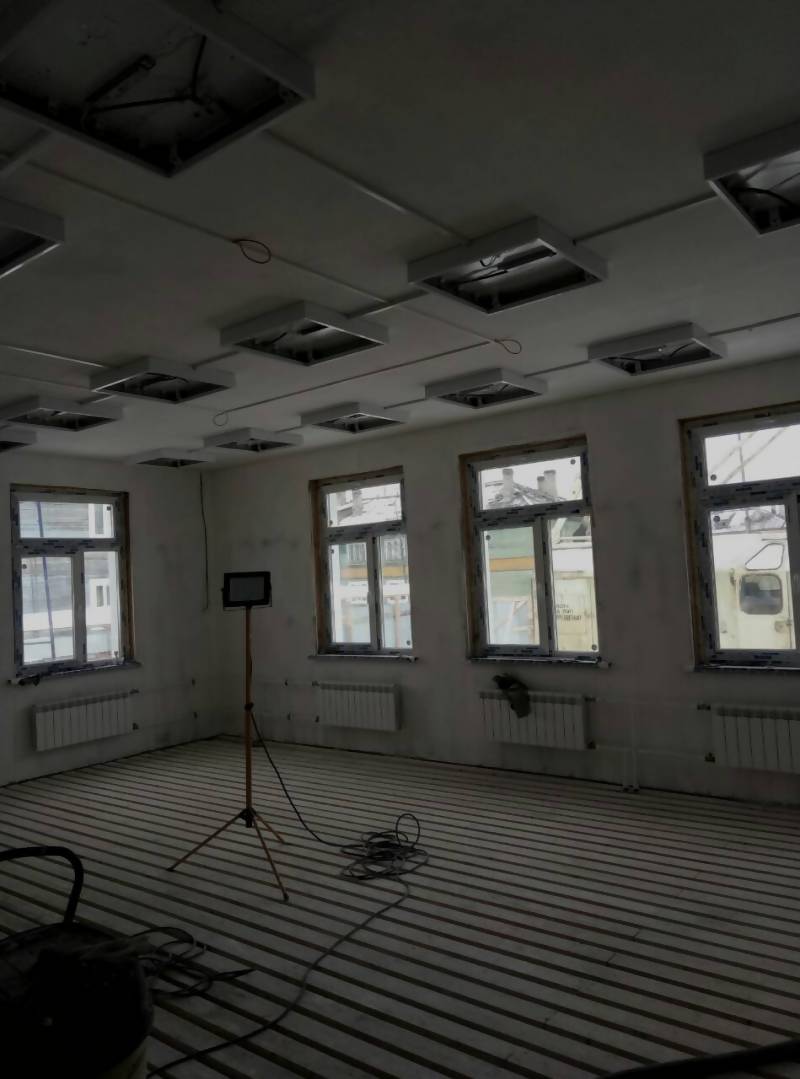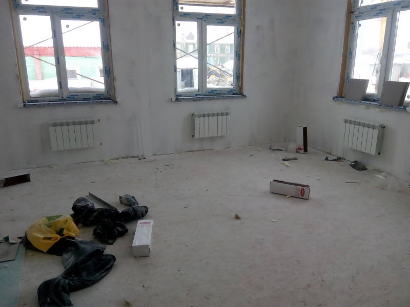 Система отопления: прокладка труб по техподполью – 100%; устройство стояков – 100%; установка и подключение радиаторов отопления – 90%.