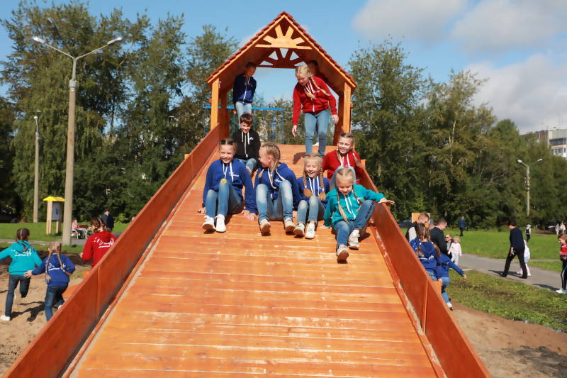 В сквере имени Грачева в округе Варавино-Фактория в рамках проекта "Бюджет твоих возможностей" состоялось открытие горки для детей.