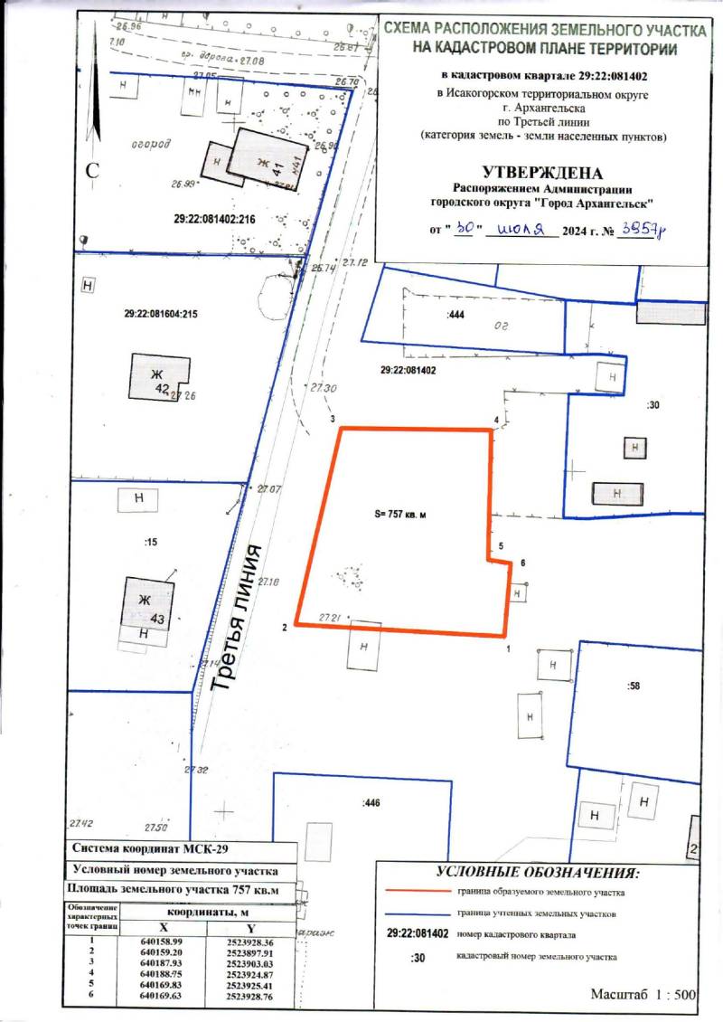 Департамент градостроительства Администрации городского округа "Город Архангельск" извещает о возможности предоставления земельного участка в кадастровом квартале 29:22:081402, расположенного в Исакогорском территориальном округе г. Архангельска по Третьей линии, площадью 757 кв. м, для индивидуального жилищного строительства.