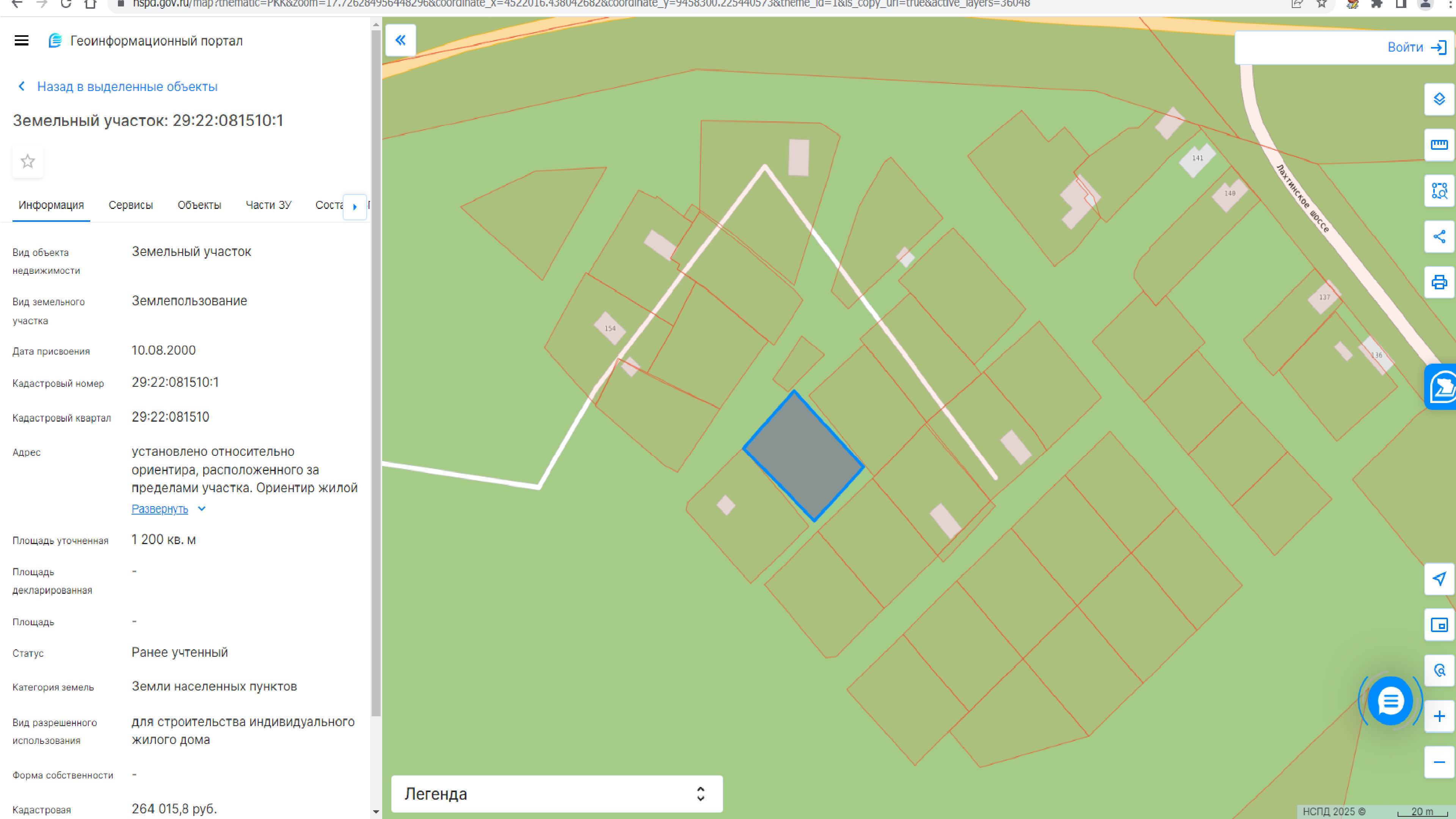 Департамент градостроительства Администрации городского округа "Город Архангельск" извещает о возможности предоставления земельного участка с кадастровым номером 29:22:081510:1, расположенного в посёлке Лесная речка городского округа "Город Архангельск" по Лахтинскому шоссе площадью 1 200 кв. м, для индивидуального жилищного строительства.