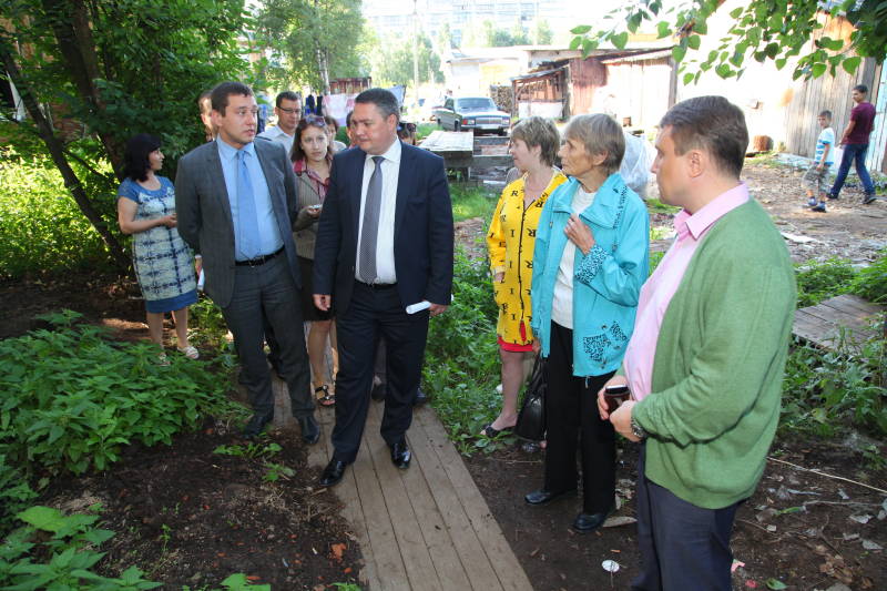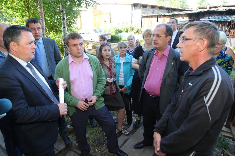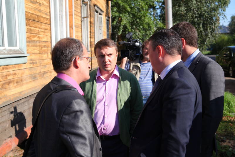 - Рабочая поездка председателя городской Думы Сергея Моисеева и зам. мэра по городскому хозяйству Святослава Чиненова на строительство бани на 2-м лесозаводе, 06.08.13